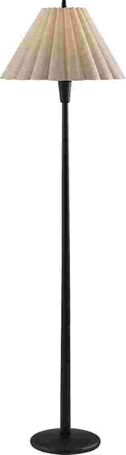 Introducing the Chenlot Shade Black Floor Lamp, a statement piece that combines modern sophistication with timeless charm. Featuring a sleek black wood base and a textured cream scalloped fabric shade, this lamp adds an elegant touch to any room. Standing tall at 60.7 inches, it is perfect for living rooms, bedrooms, or reading nooks. Equipped with a 3-way rotary socket switch, this floor lamp allows for adjustable brightness, offering both style and functionality to suit your lighting needs. Partial assembly may be required.