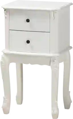 Elevate your bedroom with the quiet elegance of the Cherabon nightstand. The Cherabon is fitted with two drawers to provide plenty of space for night-time necessities. Clean angles and stylish molding for a classic look that complements its convenient design. The Cherabon requires assembly and features engraved metallic knobs for an added touch of glamour. Cabriole legs complete the look, making the Sophia a functional and stylish fit for any bedroom. Customer assembly is required.