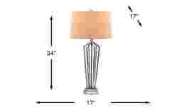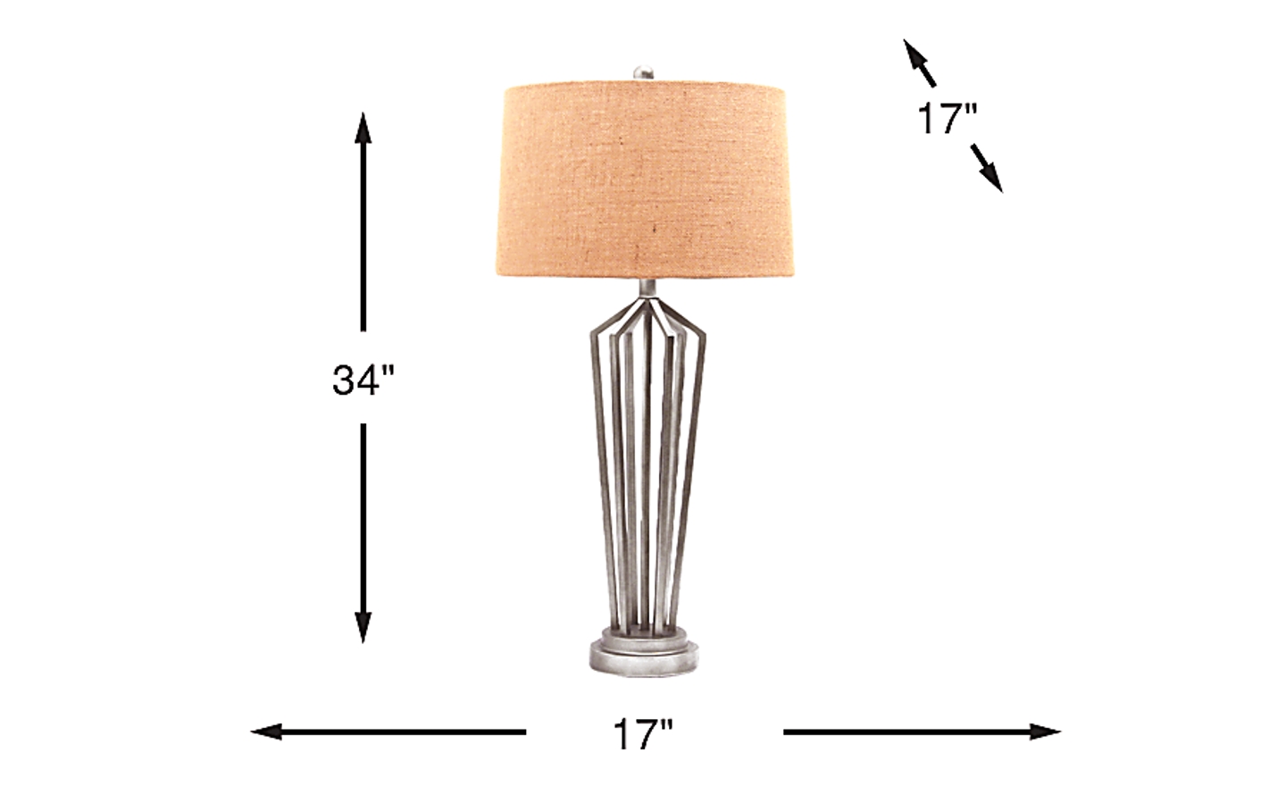 Classy and contemporary, the Cherami table lamp will redefine your space. Crafted of gray-finished metal, its pillared base forms a stately fluted shape. A drum shade rendered in a natural beige color tops it off for a versatile design. This lamp includes a 3-way switch for adjustable brightness and takes up to a 150 watt bulb (not included).