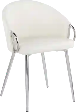Chic modern style shines bright with the unique design of the Cherlyn chair. With a rounded low backrest, sleek silver armrests and frame, it's the perfect piece for your contemporary dining area. Customer assembly is required.