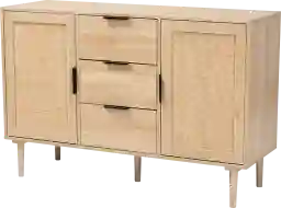 To highlight the natural textures of the rattan and wood, our stylists recommend layering decor with varying heights. Placing a set of table lamps on the surface can provide warm, ambient lighting that accentuates the wood grain. Additionally, hanging a decorative mirror above the unit can create a sense of depth, while incorporating organic elements like a small houseplant will complement the "Chesak" natural finish and bring a soothing, cohesive aura to your space.