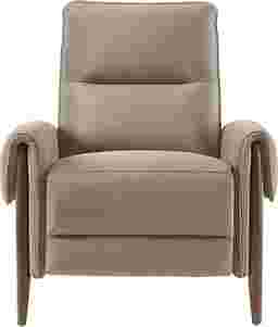 This chair bridges the gap between a high-end accent chair and a functional recliner. While traditional recliners often feature heavy, skirted bases and rounded shapes, this model utilizes contemporary elements like tapered legs, welted seams, and subtle tufting. These refined shapes and the "sandy beige" neutral palette allow it to blend seamlessly into modern decors, making it an ideal choice for shoppers who want the comfort of a recliner without the aesthetic of a heavy motion furniture piece.