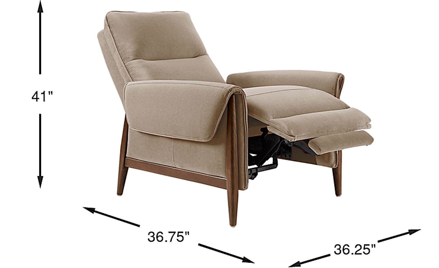 This chair bridges the gap between a high-end accent chair and a functional recliner. While traditional recliners often feature heavy, skirted bases and rounded shapes, this model utilizes contemporary elements like tapered legs, welted seams, and subtle tufting. These refined shapes and the "sandy beige" neutral palette allow it to blend seamlessly into modern decors, making it an ideal choice for shoppers who want the comfort of a recliner without the aesthetic of a heavy motion furniture piece.
