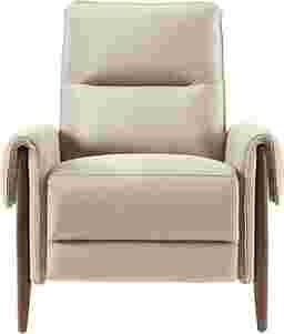 Anchoring a quiet, calm sophistication with moments of reflection, the Cheswick collection revels in its refined shapes and understated elegance. Upholstered in natural white velvet, this contemporary recliner exudes exquisite comfort through its tailored silhouette, accented by welted seams and subtle tufting. An artful interplay of texture and form is showcased through padded arms that gracefully fold over, creating a soft flare before flowing seamlessly into the sculpted wooden frame with a rich dark brown hue. Dual power reclining allows effortless adjustment to the headrest and footrest, offering personalized comfort that feels as intentional as its design. Upholstery: 100% polyester.