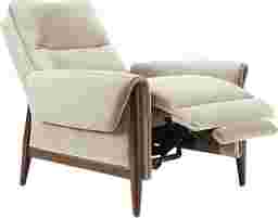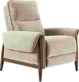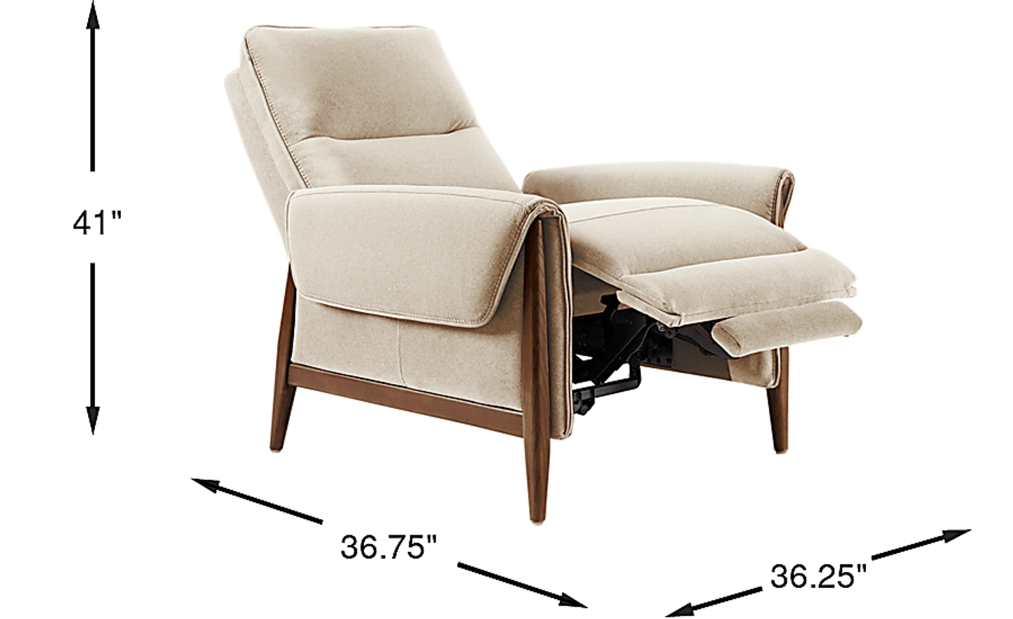 Yes, this chair is specifically designed with a contemporary silhouette that avoids the bulky, overstuffed look of traditional recliners. With a width of 36.25 inches and an elevated sculpted wooden frame with tapered legs, it has a lighter visual footprint. This "leggy" design allows light to pass underneath the chair, which helps a small room feel more open and less cluttered.