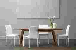 The Chewning walnut dining table blends classic style with contemporary design. This table, which extends from 63 inches to 83 inches with one middle extension leaf, has an American walnut veneered top, solid wood frame and legs. The rich American walnut finish compliments a multitude of design styles, from traditional to modern. Customer assembly is required.