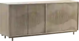 The Chinati brown sideboard has a bleached wood, light brown finish. Four-doors have been textured to create a wave pattern across the front of this piece. The tarnished brass toned base holds the cabinet without distraction. There is plenty of concealed storage behind the doors for all your entertaining and dining needs. The generous top of this sideboard will allow you to set out a buffet for your family or guests. This piece will add beauty to your coastal or transitional style home decor.