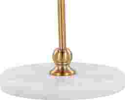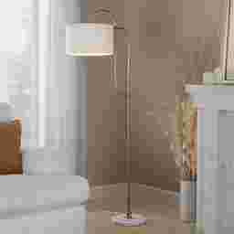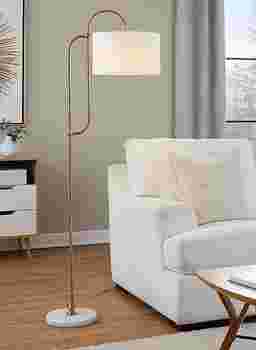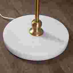 Yes, this lamp is excellent for small-space living. With a base width of only 14 inches and a total depth of 24 inches, it has a relatively small footprint. The curved gold metal pole design is particularly functional for tight layouts, as it allows the heavy marble base to be tucked behind a sofa or into a corner while the light itself extends over your seating area to maximize usable floor space.