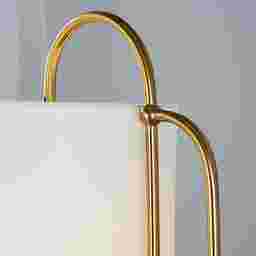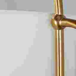 This floor lamp requires partial assembly. Typically, this involve securely connecting the gold-finished metal pole sections and attaching the linen drum shade to the socket. This straightforward process ensures the lamp can be shipped safely while allowing you to have it illuminated and ready for use in your home shortly after arrival.