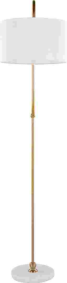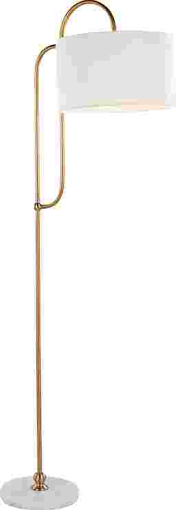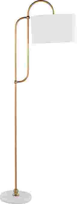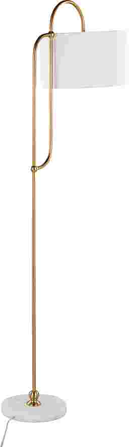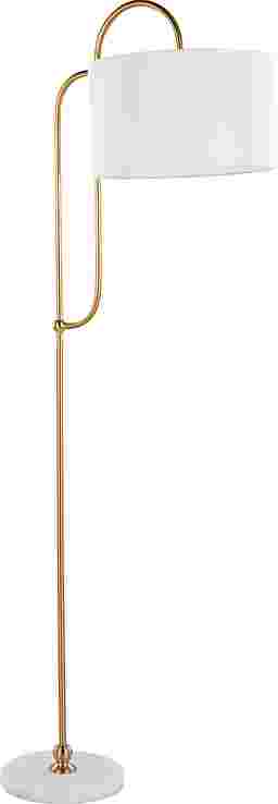Illuminate your space with elegance and glamour with the Chope Club Gold Floor Lamp. This lamp blends art deco charm with contemporary sophistication featuring a sleek curved gold metal pole, white marble base, and linen drum shade. Place in your living room, bedroom, or study to add a touch of luxury and style. Partial assembly may be required.