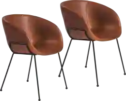 The Choupique dark brown armchair, set of 2 cradles you in vintage leatherette while matte black powder coated solid rod steel legs provide a sturdy support. Thicker stitching on the seat is stylish and durable, and the rounded feet are a delightful accent.