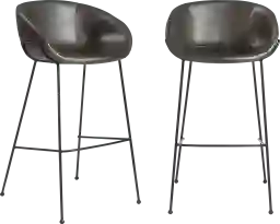 The Choupique dark gray bar stool, set of 2 cradles you in vintage leatherette, while matte black powder coated solid rod steel legs provide a sturdy support. Thicker stitching on the seat is stylish and durable, and the rounded feet are a delightful accent.