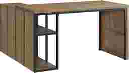 Keep your office organized with this Churrea desk with storage credenza. The L-shaped desk is both beautiful and functional, providing ample storage and style for your home office. Made from acacia wood and metal, the mix of materials gives this desk an industrial, modern look. The side credenza features two shelves divided into four compartments and a wide desktop, keeping everything you need at work within reach. The compact L-shaped desk takes up a little space, making it fit perfectly in the corner or small space. Customer assembly required.