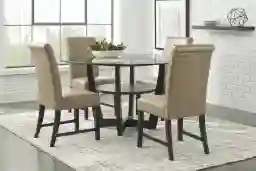 Ciara Espresso 5 Pc 48" Round Dining Room With Champagne Chairs
