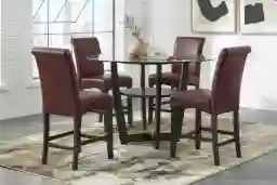 Ciara Espresso 5 Pc 54" Round Counter Height Dining Room With Burgundy Stools