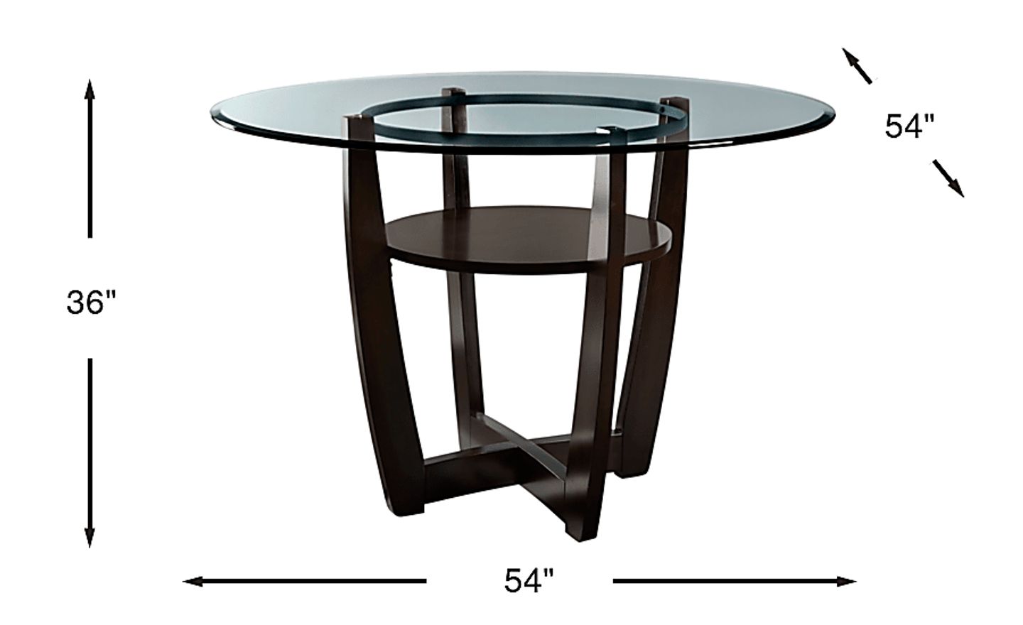 The Ciara counter height table is a beautiful choice for contemporary dining. Made with okueme veneers, the table features a 54 inch round glass top with a 1 inch bevel. The table's base has a built-in shelf perfect for decorative and practical items alike.