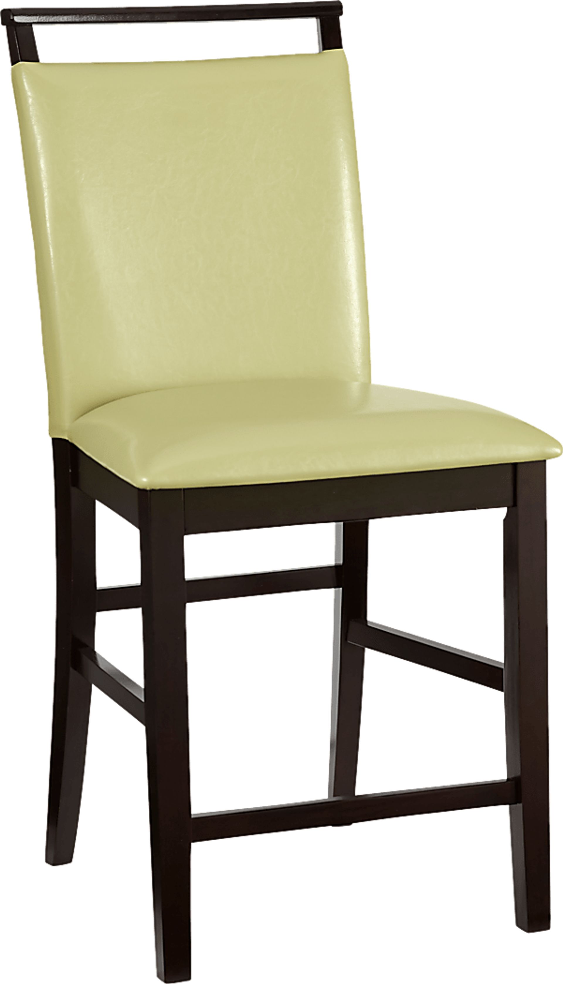 Strikingly contemporary yet easily able to blend in a variety of settings, the Ciara counter height stool provides a stylish seating solution. It features a padded seat and back upholstered in green leather style fabric. Wooden legs and stretchers in a rich espresso finish provide sturdy support.