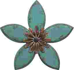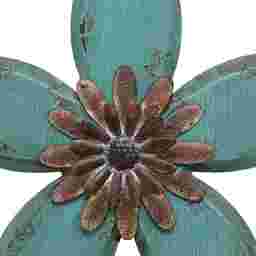 Decorate a bare wall in your home with the Cicero flower wall decor. With a distressed teal and red finish, this round flower has a salvaged, vintage feel. Display it among pieces of rustic or farmhouse decor for a cohesive look. Customer assembly is required.