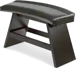 With striking modern curves thoughtfully balanced by traditional designs, the Cider Creek dining room exemplifies the transitional style. The curved bench and two barstools feature soft, easy-to-clean upholstered seats in gray, with comfortable footrests. The table is spacious, with a striking triangular curved design and a convenient shelf underneath. Birch and cherry veneers in a chocolate finish will perfectly complement after-dinner drinks with guests.