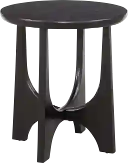 The Cinbar black end table features modern styling with an organic architectural inspired design. The flat-cut oak wood is finished in a black matte stain. The base design features curving on the inside and straight on the outside for a unique look. Also included are adjustable floor levelers for an even balance. Customer assembly is required.