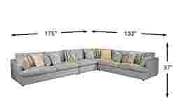 Sophisticated style comes easy with the Cindy Crawford Home Aldon Park sectional. Upholstered in woven gray chenille, this four-piece sectional features a spacious design with loose feather blend seat cushions. Sloping track arms add a modern touch while the neutral hue of the fabric makes it easy to style into a variety of living rooms. Patterned accent pillows add irresistible flair to the contemporary appeal. 100% Polyester