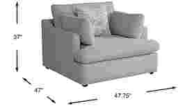 Extra wide and comfy, the Cindy Crawford Home Aldon Park chair provides surplus seating and style. Upholstered in woven gray chenille, this chair features a loose feather blend seat cushion and large back cushion for plush support. Sloping track arms add a modern touch and enhance the contemporary appeal. Upholstery: 100% Polyester.