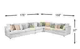 Sophisticated style comes easy with the Cindy Crawford Home Aldon Park sectional. Upholstered in woven white chenille, this four-piece sectional features a spacious design with loose feather blend seat cushions. Sloping track arms add a modern touch while the neutral hue of the fabric makes it easy to style into a variety of living rooms. Patterned accent pillows add irresistible flair to the contemporary appeal. 100% Polyester