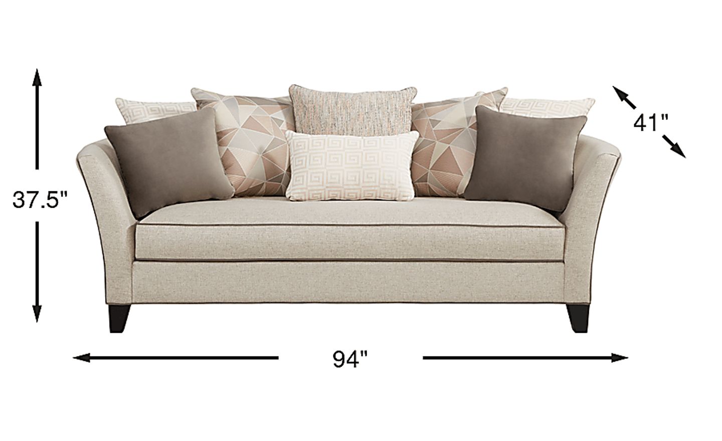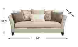 Comfortable enough for everyday use with a chic style worthy of company, the Aldyn sofa is designed for the way you really live in your home. Upholstered in woven fabric in a versatile shade of beige, this stylish sofa features flared arms and contrasting welting detail. A sleek bench style seat cushion gives this sofa a modern look, while an assortment of accent pillows, featuring a beautiful combination of mauve and blush tones in a chic mix of solid, geometric and Greek key patterns, provides customizable back support. Upholstery:100% Polyester
