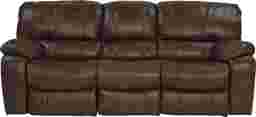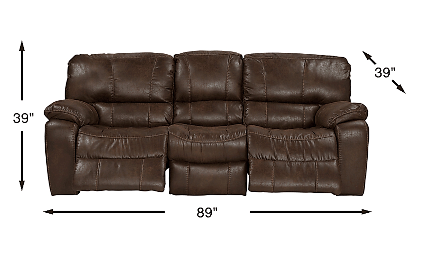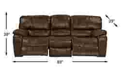 There's no better place to unwind than in the reclining, body contoured comfort of the Alpen Ridge power reclining sofa. Upholstered in durable easy care embossed MicroFiber, with the look and feel of a classic brown bomber jacket rendered in a rich chocolate color with stylish contrasting baseball stitching, this casual contemporary sofa features power reclining chaise footrests that provide full leg support with the touch of a button. Pub style seat backs with lower lumbar support, pillowtop track arms and contoured bucket seats cushion your body in exactly the right areas so you can truly relax. 24" extension when footrest is fully reclined. Allow 4" for wall spacing. Embossed polyester microfiber