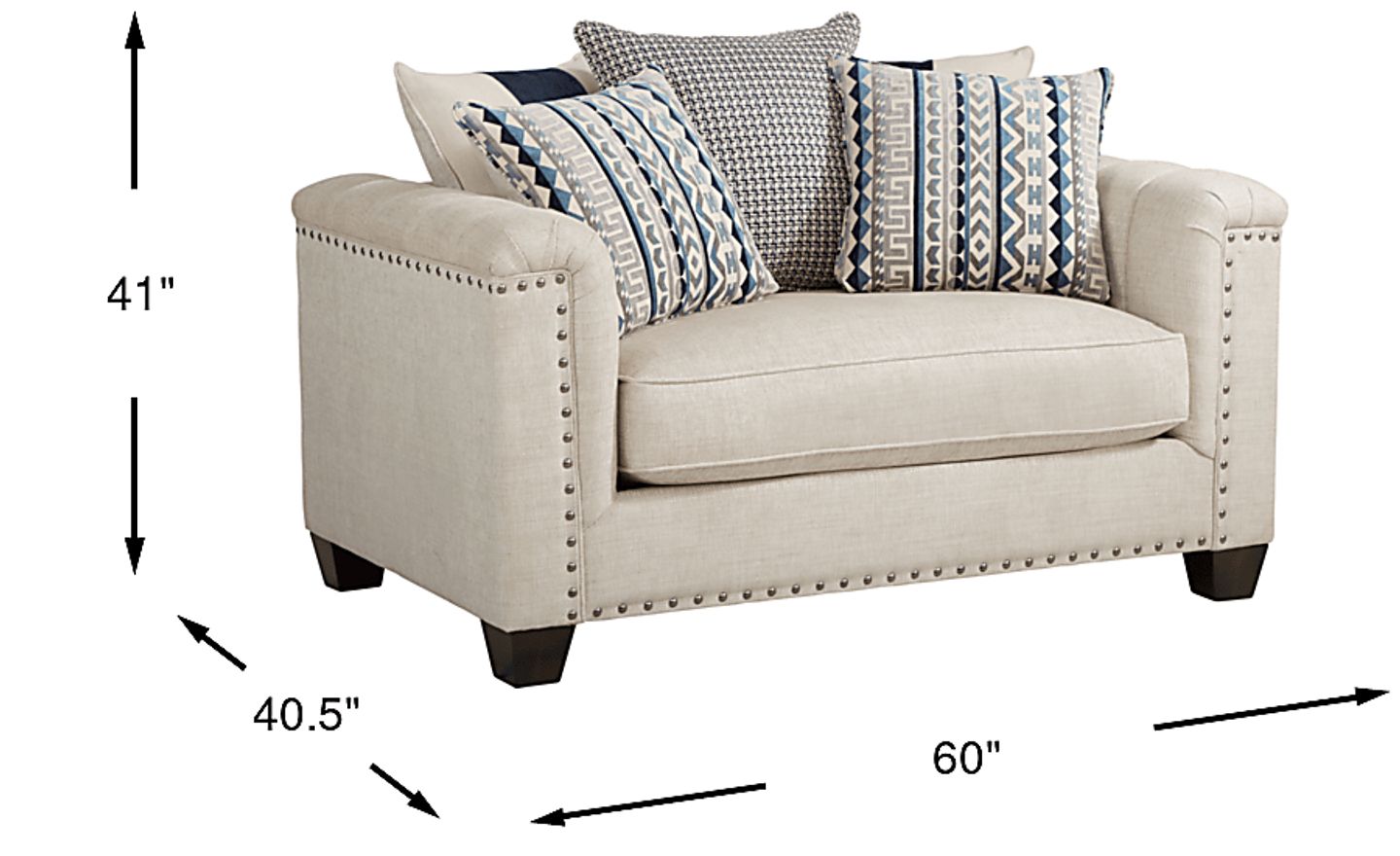 Large enough to curl up on with room to spare, the Asher Place chair adds a plush sense of style to your living space. Upholstered in taupe woven fabric, this oversized chair features a loose scattered pillow back with a mix of solid and patterned pillows offering customizable support. Sleek track arms are embellished with elegant interior channel detail, while brushed nickel nailhead accents add the final touch of sophistication to this inviting chair. Upholstery: 72% Polyester, 28% Acrylic