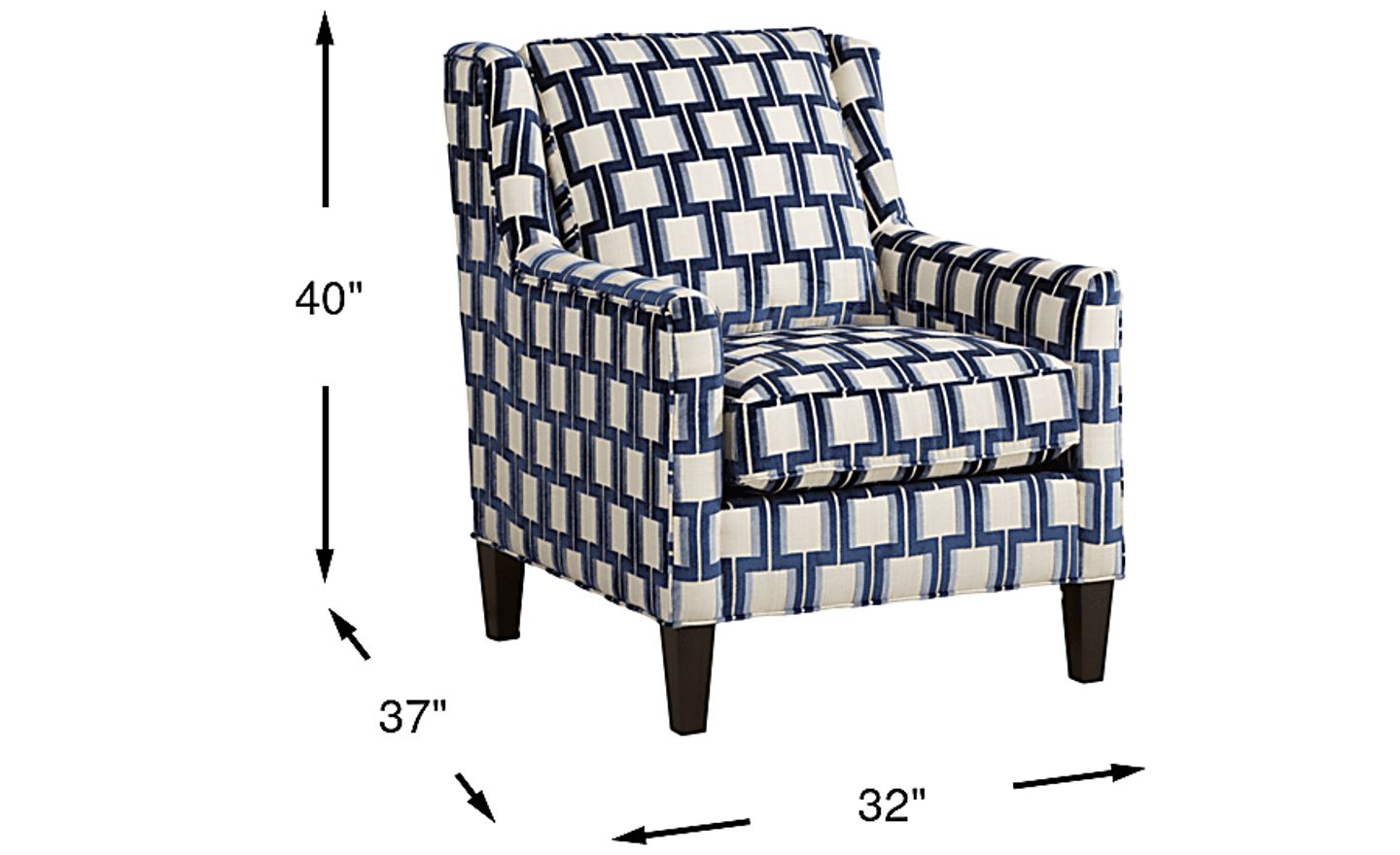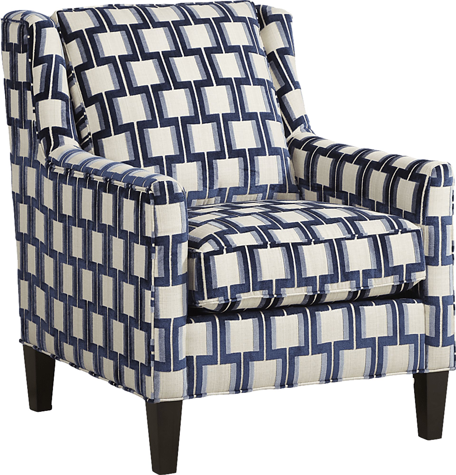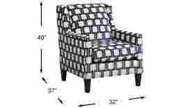 Upholstered in soft blue woven fabric with a delightful geometric pattern, the Asher Place accent chair adds a chic sense of style to any living space. Curved track arms accentuate the elegant design of this stylish seat. Upholstery: 72% Polyester, 28% Acrylic