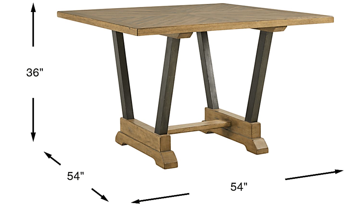 Gather in style with the Aspen Lakes counter height dining table. This trestle table features a 54 inch square top with an eye catching plank style in four equal quadrants. Crafted with acacia wood and hickory veneers, the table has a warm hickory finish.