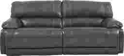 The Auburn Hill sofa combines the comfort of reclining seating with steel gray colored supple top grain leather where the body touches. Padded chaise footrests, pillowtop arms and generously sized padded seats ensure the sofa is as cozy as it is chic. With the touch of a button the power reclining feature automatically raises and lowers the footrests and can be stopped in any position for individualized comfort. Double needle stitching adds a stylish reinforcement. Top Grain Leather Where The Body Touches and Vinyl sides and backs.