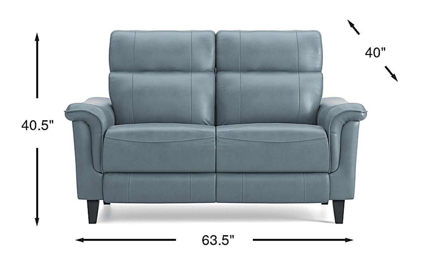 Perfect for smaller spaces or adding to your living room ensemble, the Avezzano loveseat surrounds you in comfort from head to toe. Featuring soft blue top grain leather upholstery where the body touches with coordinating baseball stitching, this piece is a lesson in luxury. Shaped padded arms and angled tapered wood legs are a chic finishing touch, offering ample midcentury modern appeal. Top grain leather where the body touches and vinyl sides and backs.