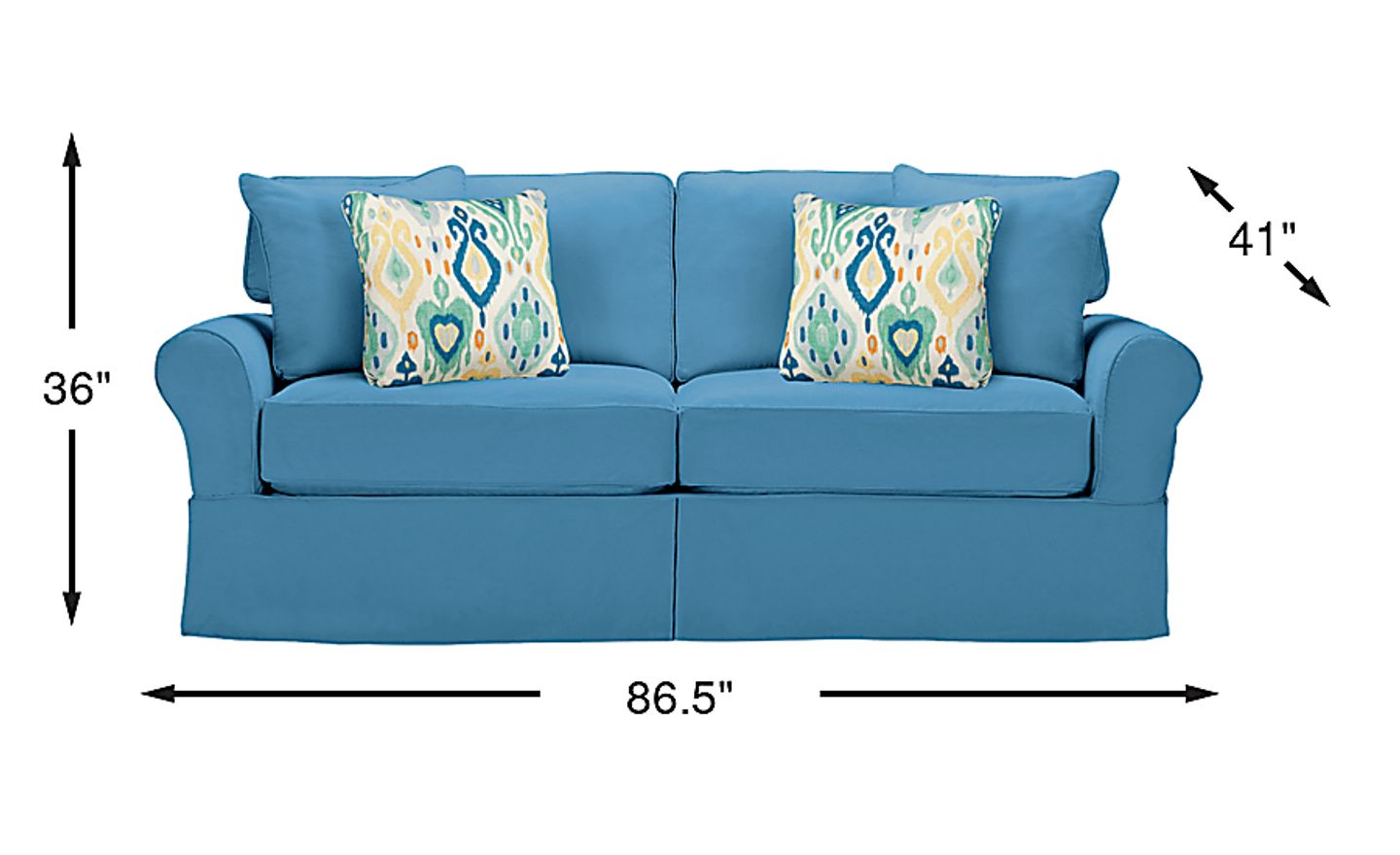 Whether your home is coastal or in the city, the Beachside sofa brings you the casual comfort of a resort hideaway. Washed chambray blue denim slipcovers cover comfortable reversible cushions and will wear over time like a favorite pair of jeans. Arms and back are fully padded for added comfort. Sofa includes a pair of matching denim toss pillows as well as a pair of traditional ikat accent pillows. 100% Cotton