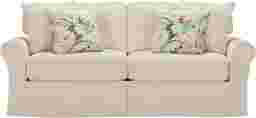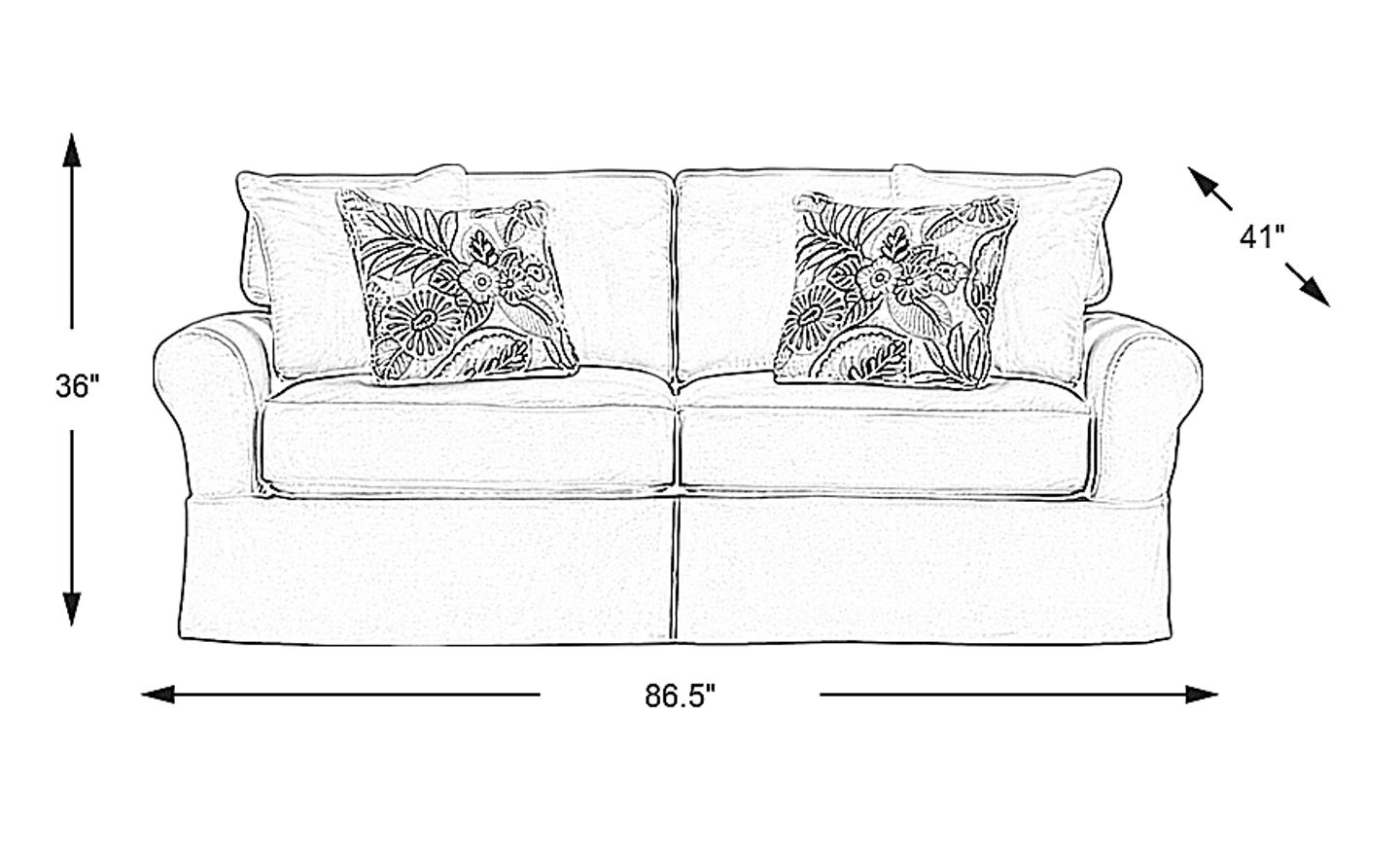 Whether your home is coastal or in the city, the Beachside sofa brings you the casual comfort of a resort hideaway. Washed natural colored denim slipcovers cover comfortable cushions and will wear over time like a favorite pair of jeans. Arms and back are fully padded for added comfort. The sofa includes a pair of matching natural denim toss pillows as well as a pair of decorative floral accent pillows. 100% Cotton. Shown with Tracey Beachcomber accent pillows.