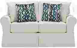 For casual cozy seating, nothing beats the Beachside denim loveseat. The washed natural colored denim slipcover has natural distressing for an easy and relaxed look. Contemporary accent pillows as well as matching natural denim toss pillows are included. 100% Cotton. Shown with Basque Turquoise accent pillows.