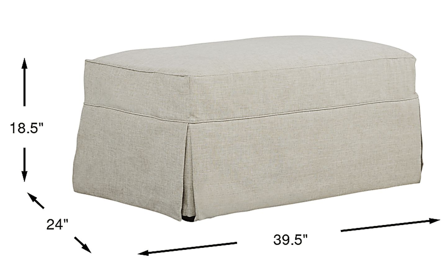 An ideal complement to the collection, the Beachside Walk ottoman is versatile and appealing. Use it as a footrest or as extra seating, the ottoman is covered in linen colored textured woven fabric. Welted seams and skirted bottom add to the casual styling. Upholstery: 100% Polyester