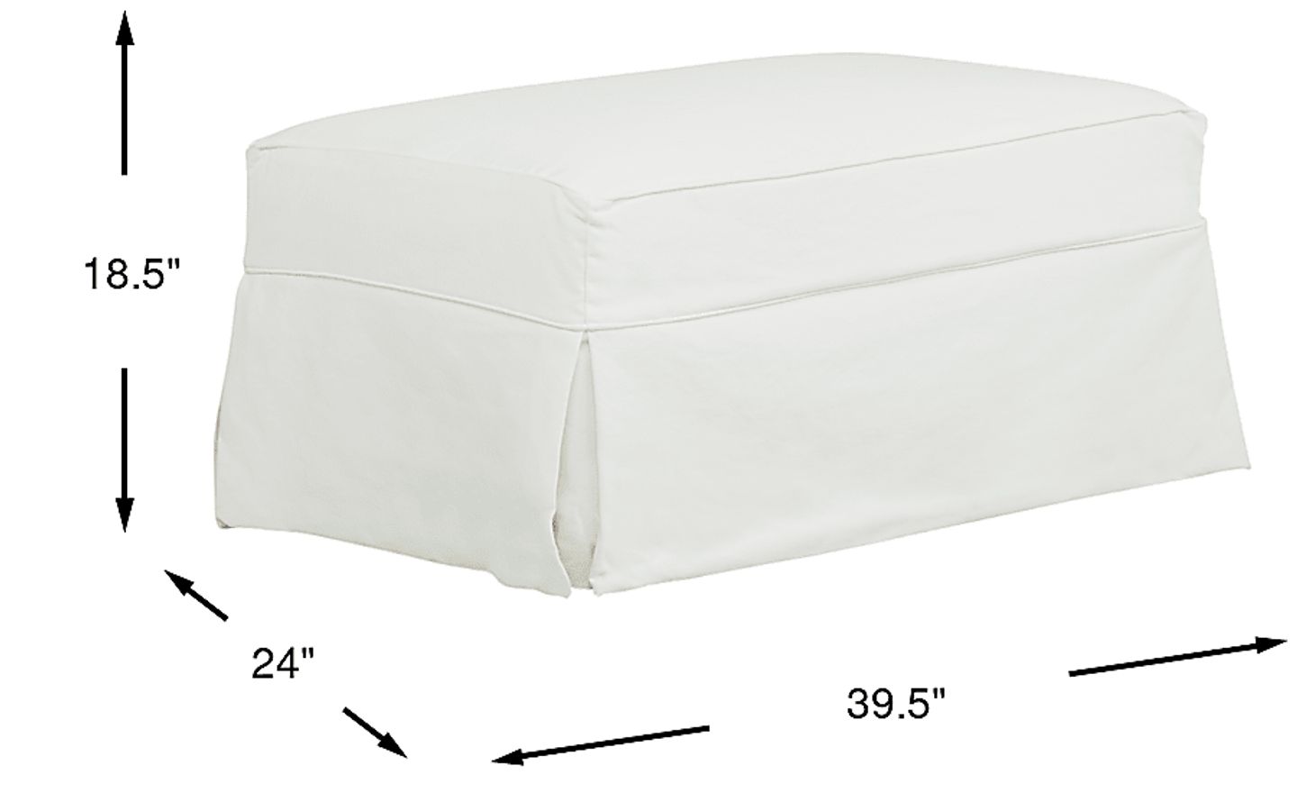 An ideal complement to the collection, the Beachside Walk ottoman is versatile and appealing. Use it as a footrest or as extra seating, the ottoman is covered in soft white denim fabric. Welted seams and skirted bottom add to the casual styling. Upholstery: 100% Cotton.