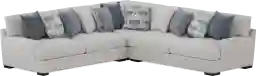 Boasting noteworthy style with comfort to match, the Bedford Park sectional from Cindy Crawford Home creates a cozy gathering area for all to enjoy. Upholstered with woven fabric in ivory, this sectional has a soft, textured quality that will make family and friends feel right at home. Seat cushions feature a plush custom blend of feathers, fiber and down surrounding a supportive foam core for comfort that's soft yet structured. Offering a hint of modern style, its low-profile track arms bring a chic aspect to the look. In addition, seat and back cushions are reversible to help extend the life of your sectional. An assortment of accent pillows features beautiful patterns in varying shades of blue as well as solid ivory. Block legs with a black finish add an elegant final touch. Upholstery: 100% Polyester.