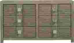 Combining contemporary style with must-have storage, the Belle Haven Dresser is a bedroom essential. This chic piece features six roomy drawers made with French and English dovetail joints for strength and stability. Each drawer is enhanced with reeded details, chrome finished hardware and chrome accents. Crafted with wood solids and primavera veneers, the dresser has a lovely gray finish.