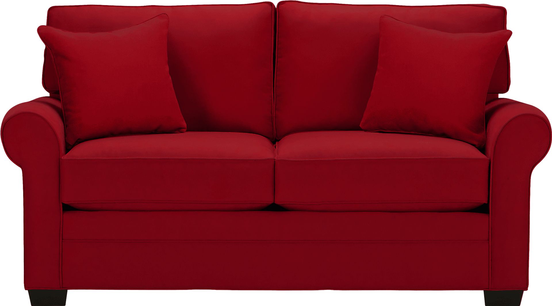 Timeless seating is here with the Bellingham sleeper loveseat from Cindy Crawford Home. Upholstered with suede-soft Microfiber Plush in an irresistible shade of cardinal red, this loveseat features reversible back and seat cushions with double-welted boxed borders. Nestled away for overnight company, the full size Nature's Bed gel foam mattress with outstanding body contouring support provides a cool and comfortable place for rest. Matching accent pillows and padded rolled arms add perfect final touches. 100% Polyester