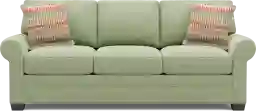 The Bellingham Celadon sofa, with its celadon green textured chenille and classic design elements, is a versatile piece that complements both transitional and classic decor styles. Its rolled arms and tapered legs lend a timeless elegance, while the pillow back cushions and inviting texture ensure it feels contemporary and comfortable. This sofa's design allows it to seamlessly integrate into various home aesthetics, offering both sophistication and approachable comfort.