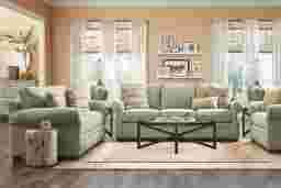 The Bellingham Celadon sofa, with its celadon green textured chenille and classic design elements, is a versatile piece that complements both transitional and classic decor styles. Its rolled arms and tapered legs lend a timeless elegance, while the pillow back cushions and inviting texture ensure it feels contemporary and comfortable. This sofa's design allows it to seamlessly integrate into various home aesthetics, offering both sophistication and approachable comfort.
