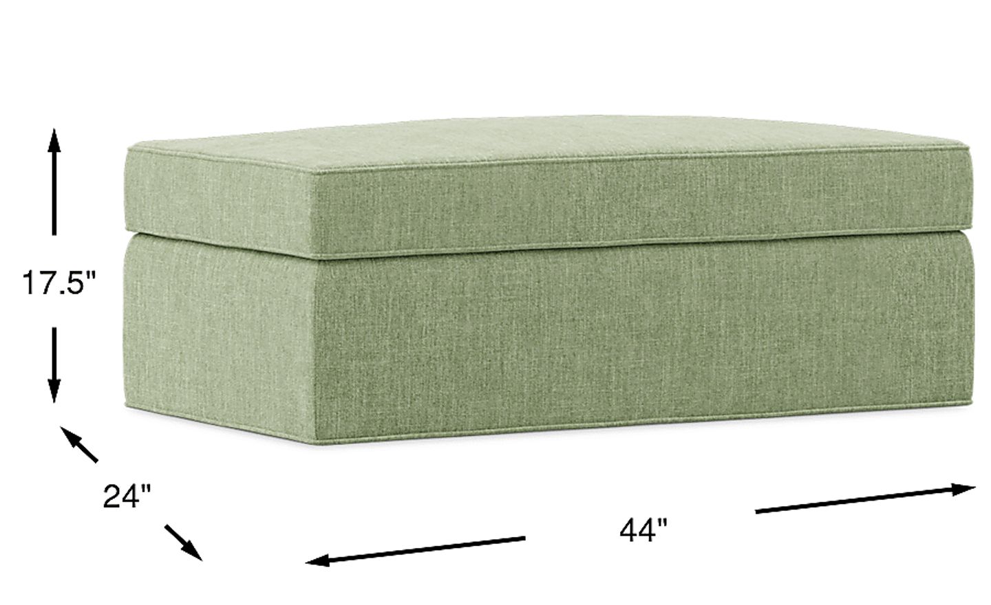 Whether as a footrest or extra seat, the Bellingham ottoman from Cindy Crawford Home is sure to be a welcome addition to your living room. This ottoman is upholstered with textured chenille fabric in an irresistible celadon tone and supported by wood block legs. 100% Polyester