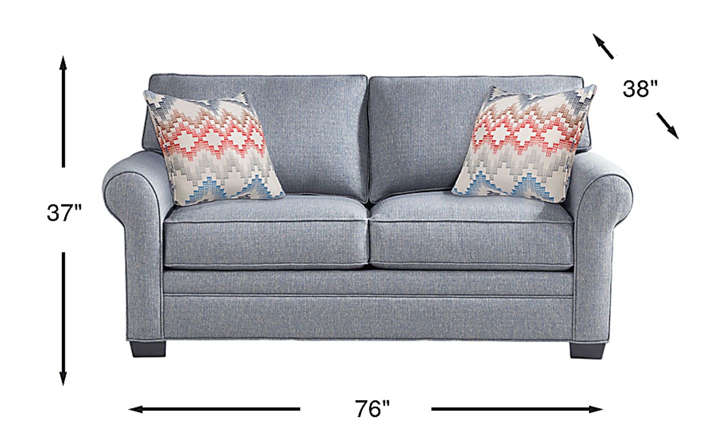 The Bellingham loveseat offers a relaxing and cozy seating option for two. With the feel of textured fabric in a classic denim color, the upholstery combines premium comfort with long-lasting durability. For effortless style, reversible seat and back cushions with double welted boxed borders, accent pillows and padded rolled arms make this loveseat a wonderful choice. Upholstery: 100% Polypropylene