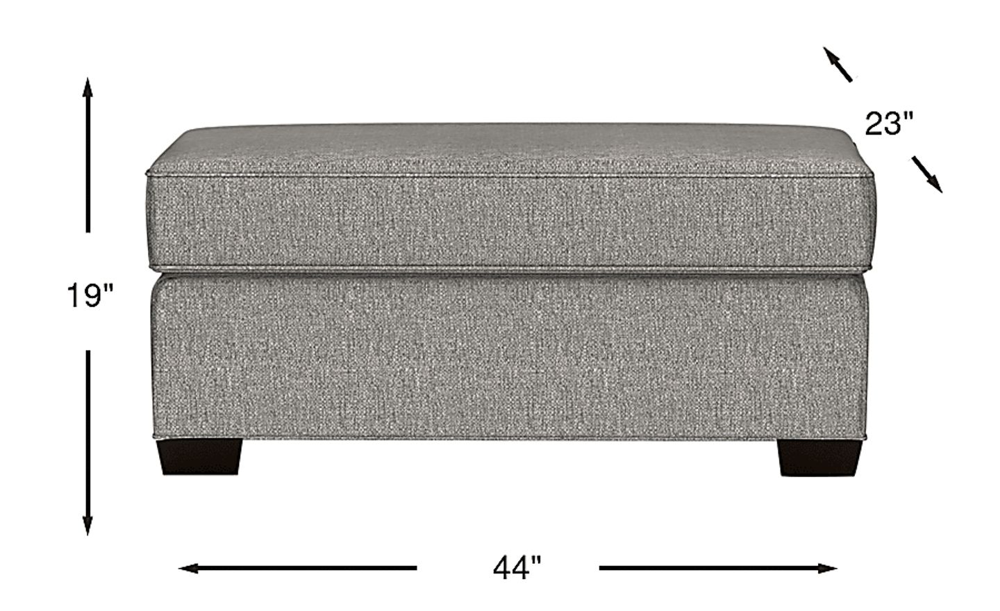 Measuring 44"w x 23"d x 19"h, this ottoman is an excellent choice for space-conscious living. Its rectangular shape allows it to double as a soft-edged coffee table when paired with a decorative tray, providing functionality without the bulk of traditional wood furniture. The 19-inch height is specifically scaled to complement most contemporary sofas, ensuring a comfortable transition from seat to footrest.