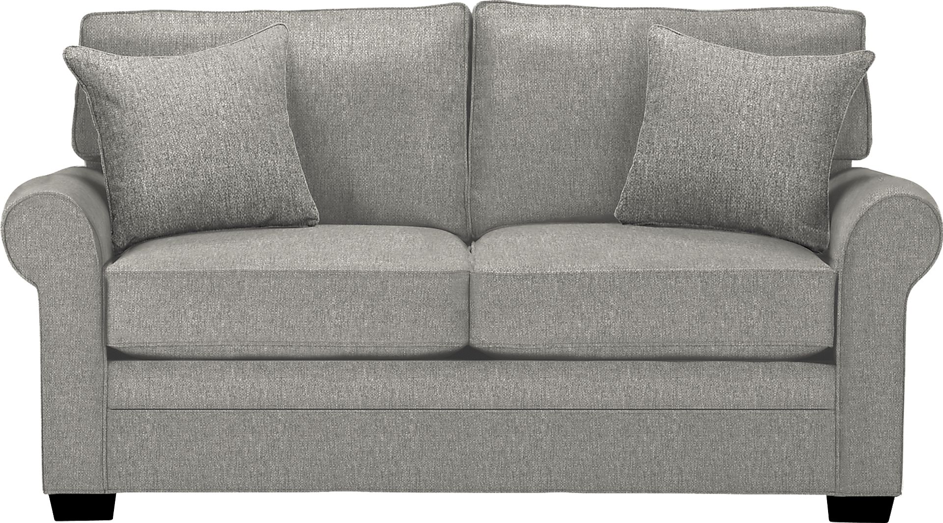 Your living room easily becomes a guest room with the versatile Bellingham sleeper loveseat. Upholstered in chic gray woven textured fabric, the loveseat balances softness and durability. Effortless style is bestowed by reversible seat and back cushions with double welted boxed borders, matching toss pillows and padded rolled arms. The full size Sealy Royale Mattress, with a quilted top, pulls out to provide a good night's sleep. 100% Polypropylene.