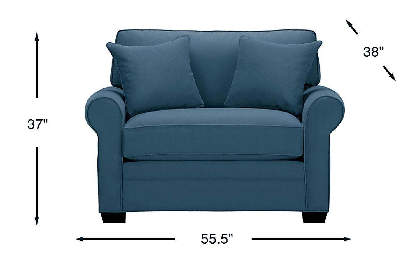 Change any room into a guest room with the versatile Bellingham sleeper chair. Stylish and functional, this contemporary chair features a twin size Sealy Royale (quilted top) mattress that pulls out easily to host an overnight guest. Covered with Microfiber Plush, the chair has an indigo color, boxed seat cushion, matching toss pillows, padded rolled arms and wood block legs. 100% Polyester