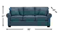 Update your living room with the delightful Bellingham sofa. This attractive sofa features indigo colored Microfiber Plush for a suede soft feel and easy care durability (this impressive fabric repels water and soiling). Additional fashionable features include loose reversible seat and back cushions with double welted boxed borders, matching toss pillows, comfortable padded rolled arms with welting detail, and wood block legs. 100% Polyester